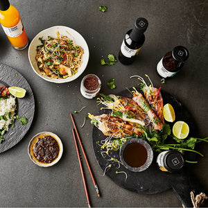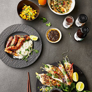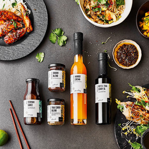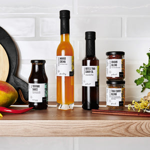 Die asiatische Küche ist die pure Vielfalt, ein Geschmackserlebnis der besonderen Art: süß, scharf, würzig, fruchtig und pikant zugleich. Und damit Sie diesen Genuss auch ganz einfach zuhause erleben können, haben wir die besten Spezialitäten für Sie in einem Set zusammengestellt – von der Gewürzmischung über unsere Ölspezialitäten bis hin zur Sauce finden Sie hier alles, was Sie für Ihren nächsten Wok-Abend suchen. Dieses Set enthält: Rotes Thai-Curry Öl (250ml), Thai Curry Blend (60g), Umami Blend (55g), Mango Crema (250ml), Teriyaki Sauce (245ml).